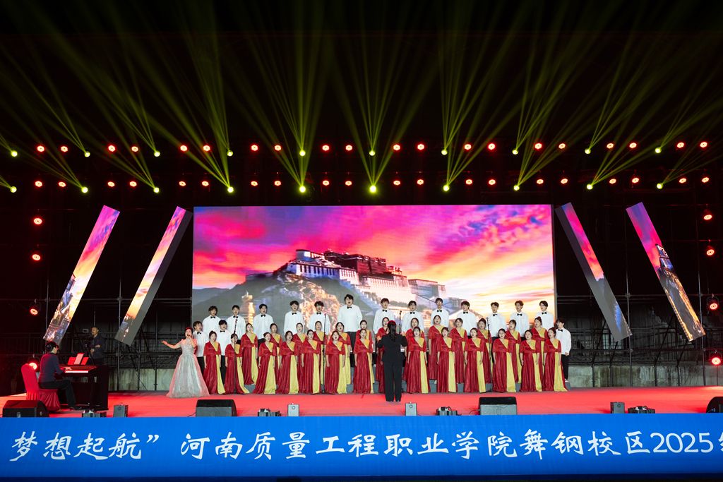 10月30日晚,以“青春激扬 梦想启航”为主题的我校舞钢校区2025级迎新文艺汇演在校区运动场举行。