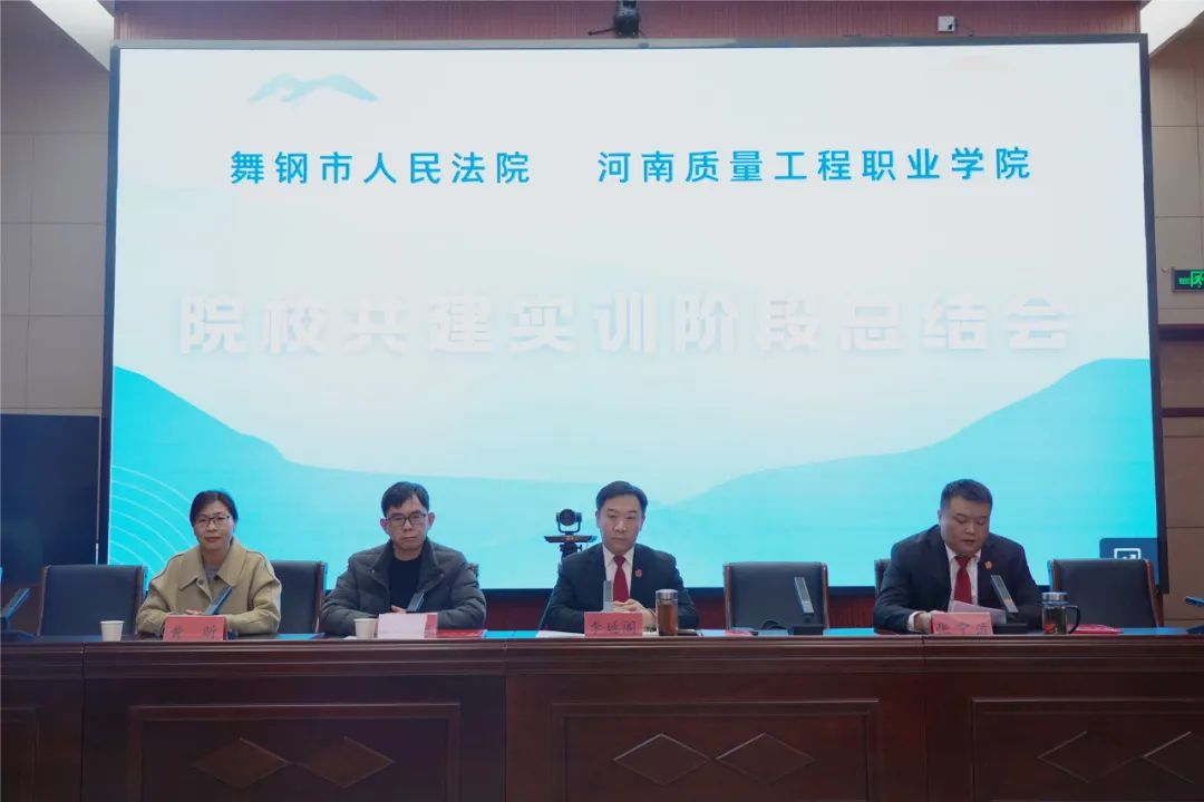 12月31日,舞钢市人民法院与河南质量工程职业学院联合召开院校共建实训阶段总结会。对院校合作共建以来进行阶段性总结,表彰优秀、分享感悟,对深入推进法律教育和司法实践的衔接融合和良性互动进行安排部署。河南质量工程职业学院公共管理学院院长欧阳学兵及师生代表;舞钢市法院党组成员、副院长李延阁,各部门干警代表参加会议。