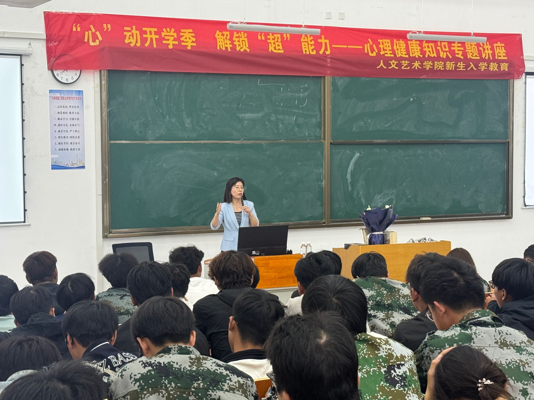 为帮助 2025 级新生快速适应大学生活、提升心理调适能力,9月17日、18日中午,人文艺术学院在舞钢校区致知楼106教室举办“‘心’动开学季,解锁‘超’能力”主题心理健康知识讲座。此次讲座由质臻书院院长郝梅担任主讲,学院2025级全体新生到场聆听,通过专业讲解为新生搭建心理适应桥梁,助力其以积极心态开启大学生活。