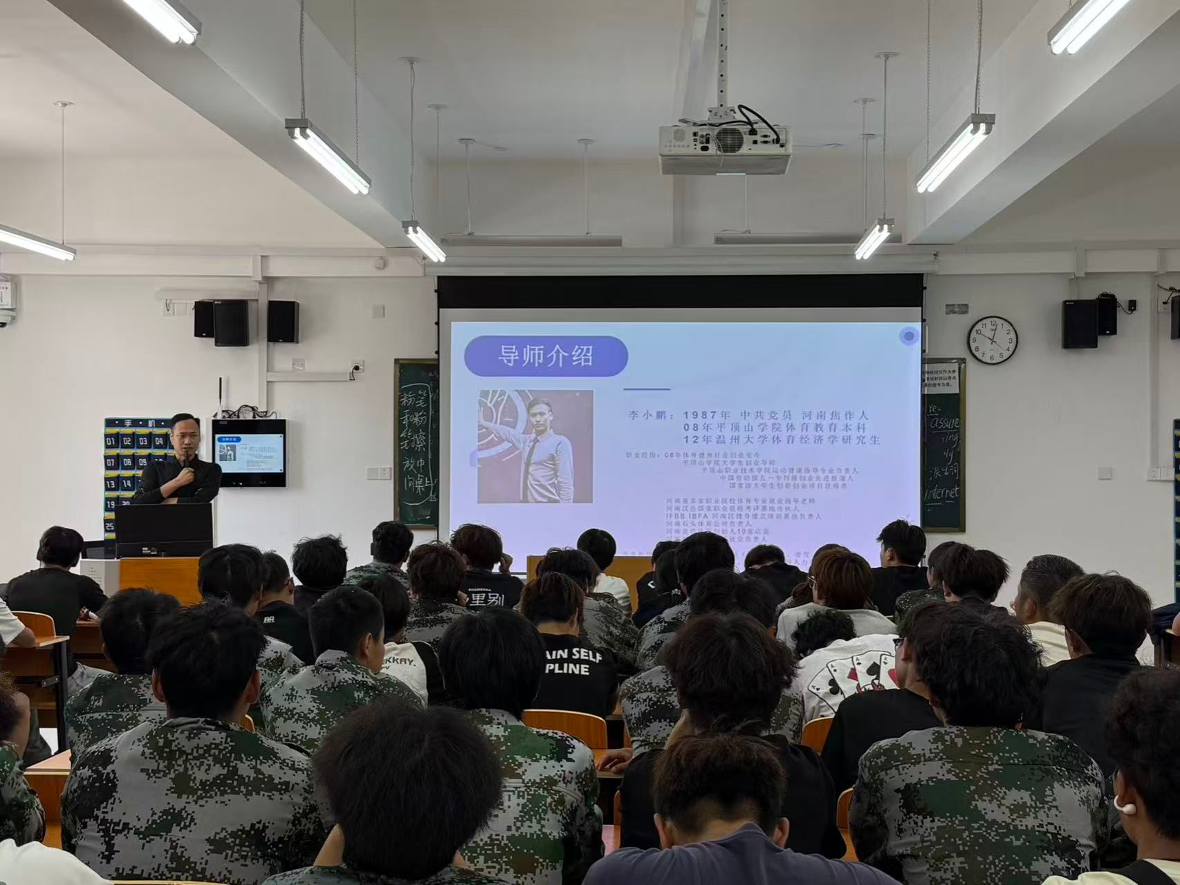 9月22日,致知楼10401教室,24级、25级健身指导专业全体学生参与“企业高管进课堂”活动,石头体育总经理李小鹏主讲,聚焦健身行业趋势与职业发展。