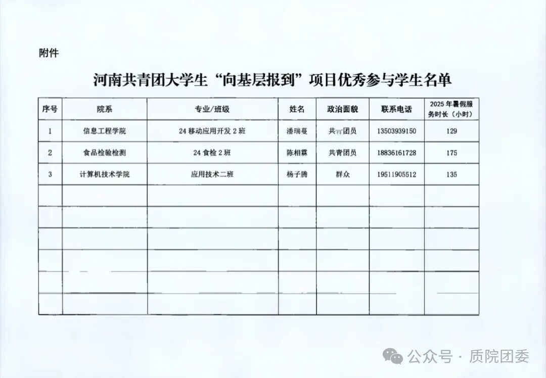 喜报!我校青年学子成功入选2025学年河南省共青团大学生“向基层报到”项目优秀学生名单