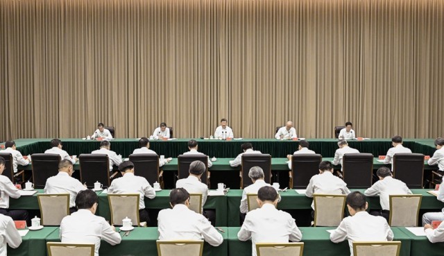 中共中央政治局常委、中央办公厅主任蔡奇出席汇报会。