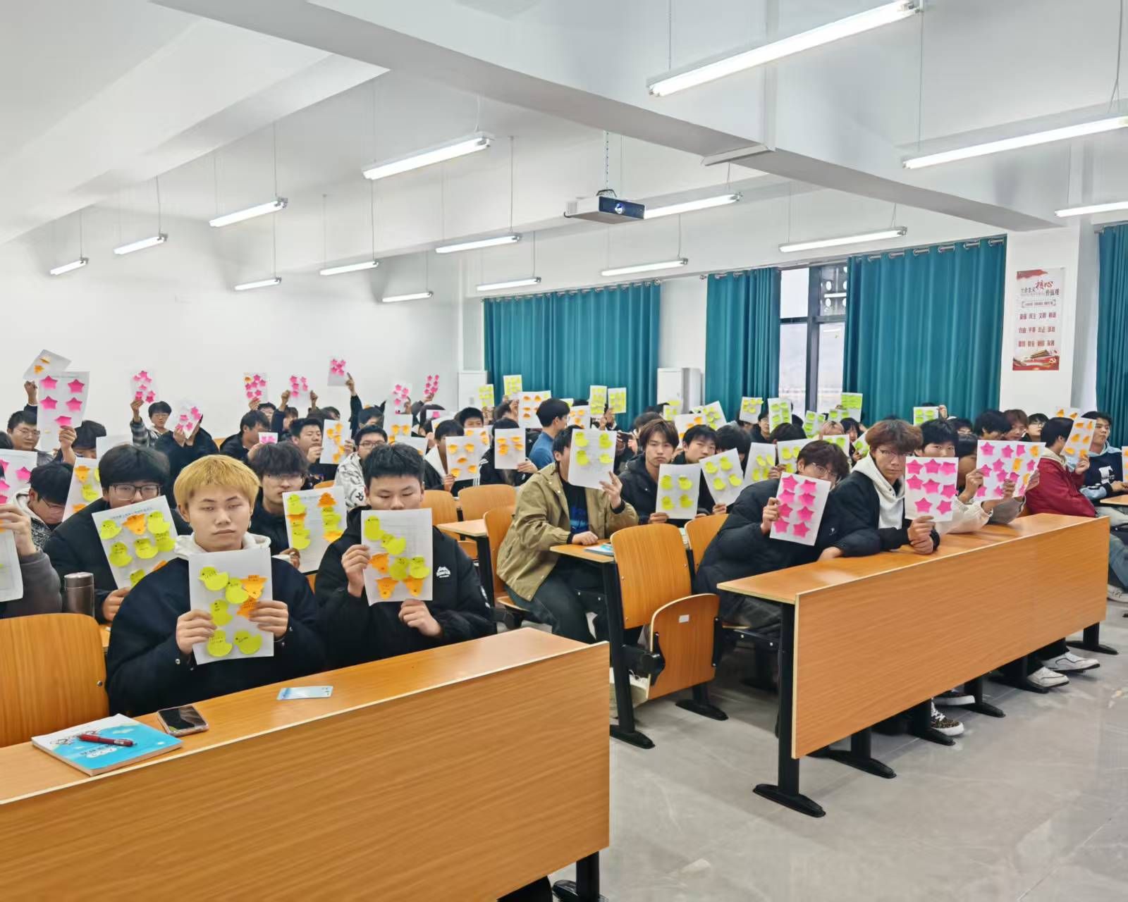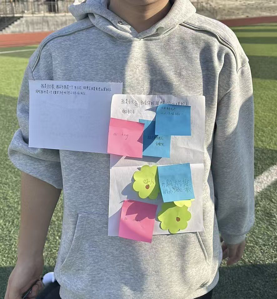 本次实践课以提升学生自我认知能力、营造积极互助的班级氛围为核心目标,课前已组织学生准备好彩色贴纸A4纸及透明胶带等材料。课堂伊始,教师以“高职阶段如何更好地了解自己”为切入点,通过提问引发学生思考,快速完成分组导入。在核心活动环节,学生先在贴纸上写下姓名与留言引导语,由同伴协助固定在后背;随后自由走动,为每位同学写下1 - 2条结合具体事例的真诚评价,既包括突出优点,也包含温和提出的待改进建议。查阅留言后,学生围绕“未发现的自身优势”“对改进建议的看法”展开小组分享,教师全程鼓励每位学生发言,确保参与度。各小组推选代表分享共性发现,让学生们看到班级群体的共同特质与普遍成长需求。