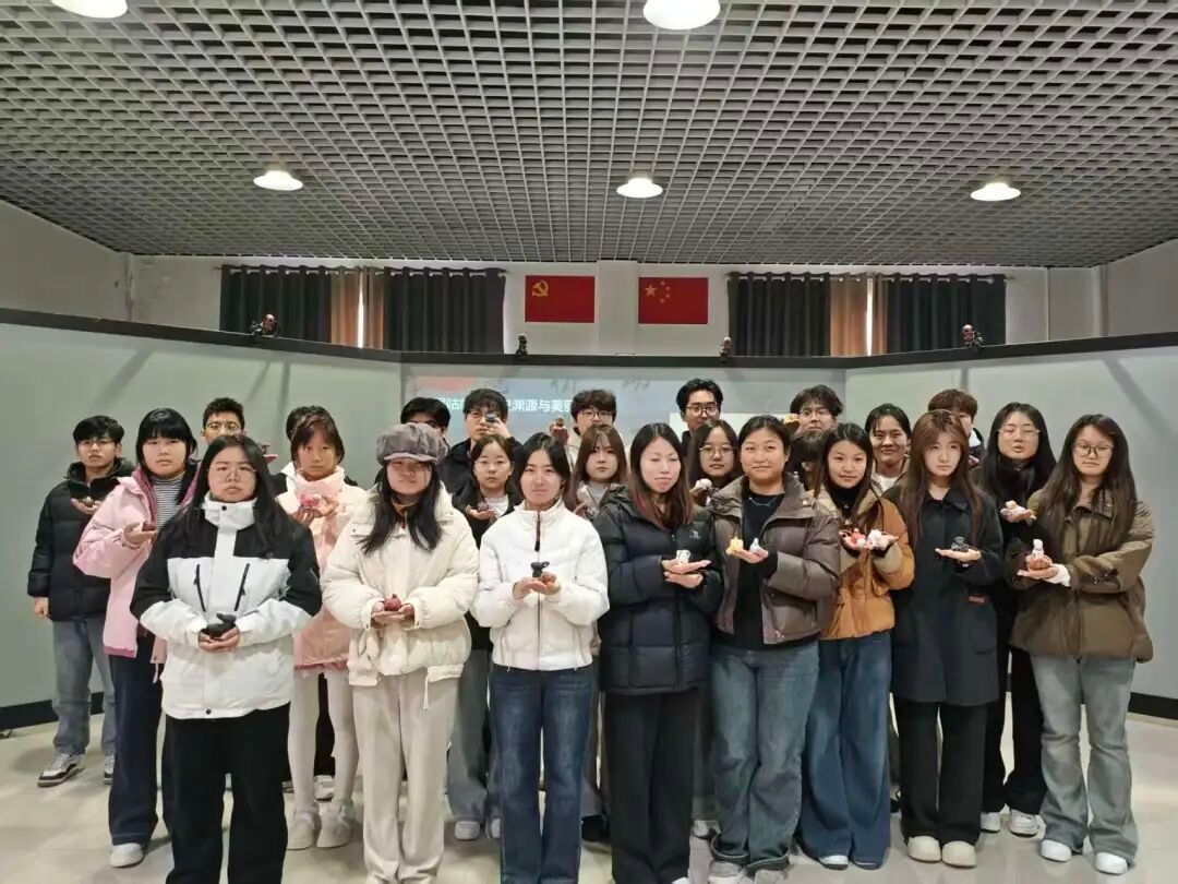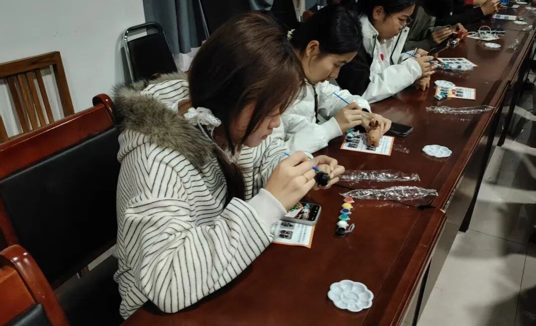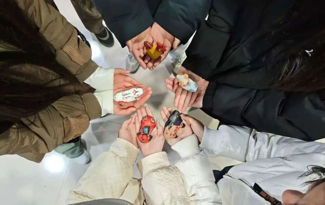从指尖上色、勾勒线条、 晕染柔光,到斑斓颜料赋予素坯鲜活的生命力。同学们在专注填涂时光里卸下浮躁,色彩流淌中带走杂念;非遗美学中的平静与治愈,一场简单却满含温度的文化疗愈之旅,就此开启。