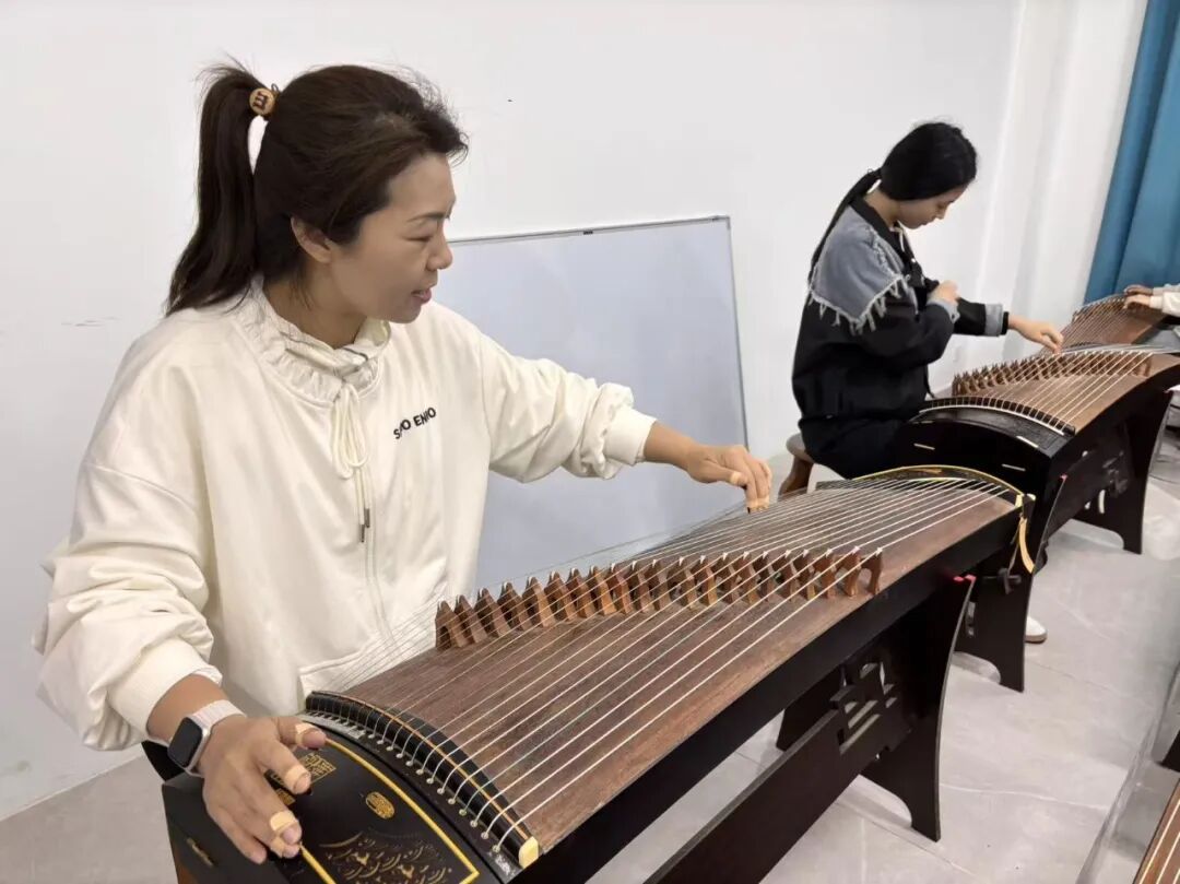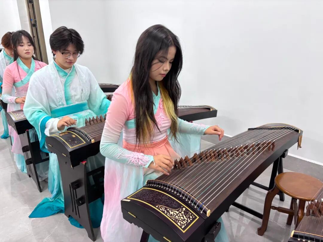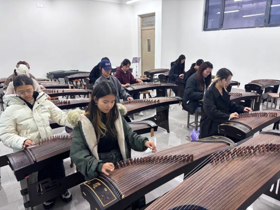 (2025年心理健康教育宣传月)人文艺术学院开展“瓷韵琴音,青花入梦”古筝特色疗愈活动