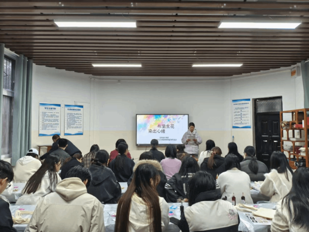 为丰富校园文化,拓展心理健康教育新形式,助力学生在艺术创作中释放压力、抒发自我,2025年大学生心理健康教育宣传月活动期间,我部于2011月6日下午,在格物楼105实训教室成功举办了以“布里生花,染出心绪”为主题的扎染体验活动。本次活动巧妙融合了非遗文化与心理疗愈,为同学们开启了一场别具一格的心灵滋养之旅。