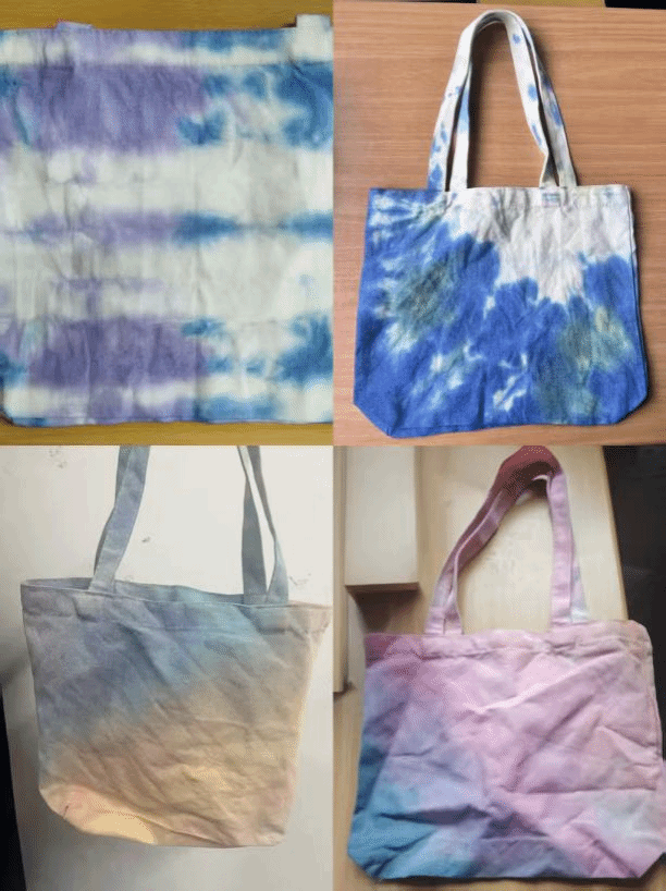 经过细心制作与创意发挥,一幅幅独具个性的扎染作品陆续完成。这些作品或淡雅如水,宁静致远;或绚烂似火,热烈奔放,不仅彰显了同学们的审美意趣与匠心独运,更流淌出他们在创作过程中的情感波澜与心灵独白。