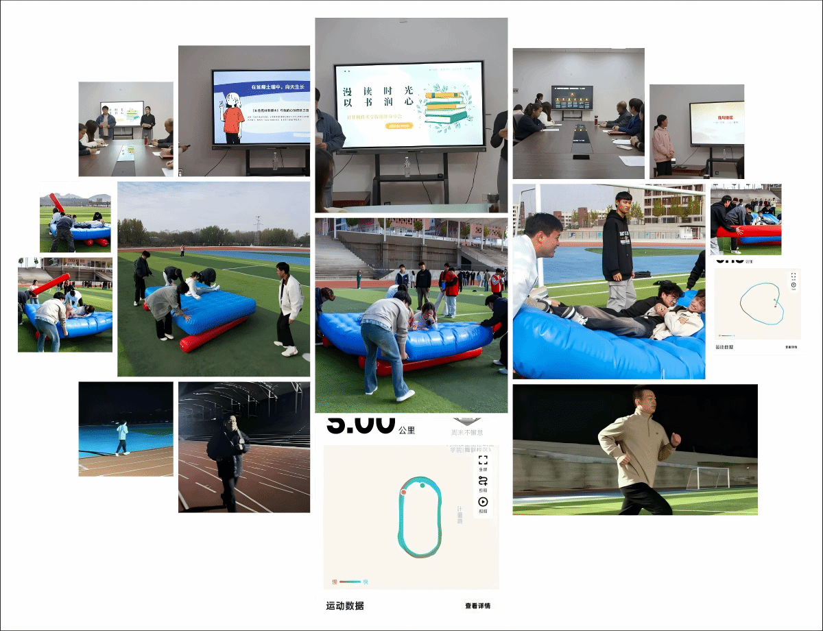 4. 文体活动与心理赋能同步:计算机技术学院117日举办“漫读时光,以书润心”读书分享会,机电工程学院1111日开展“车轮滚滚坦克大战”趣味活动,且于111日至21日开展21天“心晴”跑步打卡活动,在运动与交流中锤炼意志、增强协作。