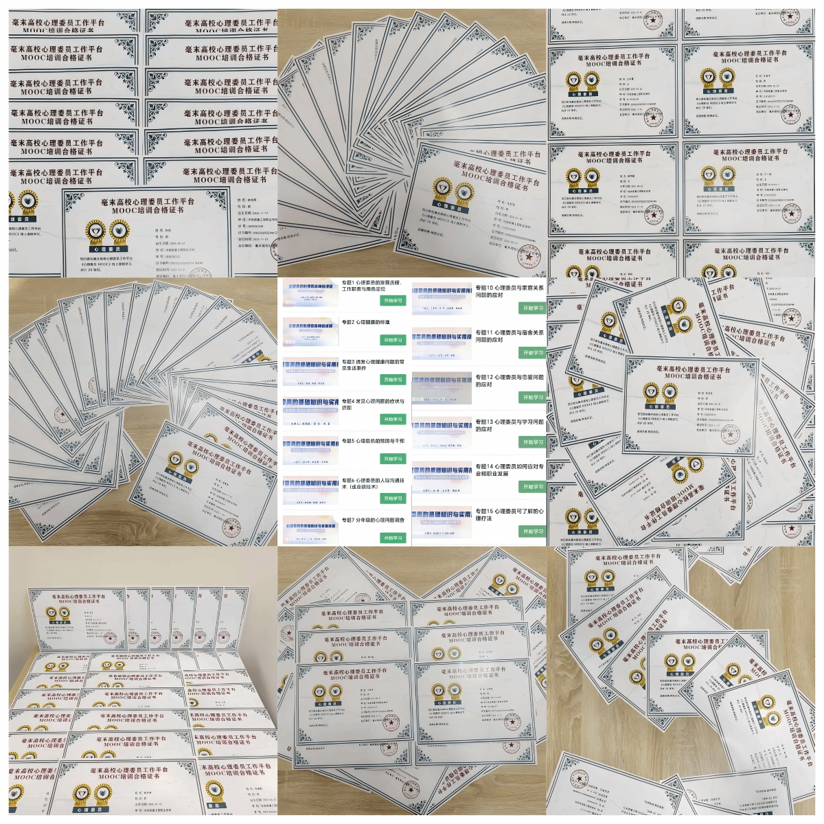 111日至10日,联合“毫末心理委员工作平台”开展线上MOOC培训,254名心理委员、宿舍心理信息员及心协成员参与17个专题课程学习,176人顺利结业,通过率达69.3%。活动评选出50名优秀心理委员,进一步夯实了心理健康防护网。