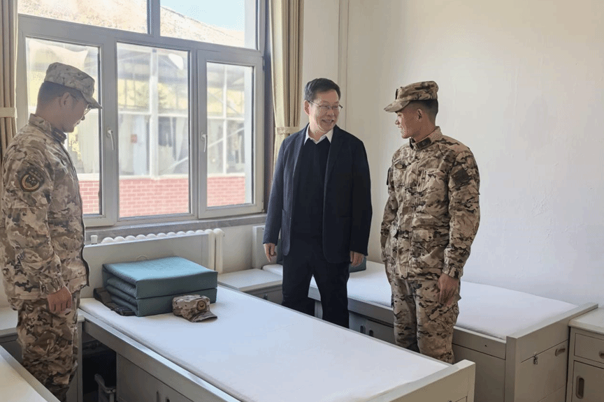 为深入贯彻习近平强军思想,激励入伍学子扎根军营、建功国防,11月14日至18日,校长鲁书喜、副校长金铮,赴武警青海总队果洛支队甘德中队,回访慰问正在服役的我校入伍学子。学校办公室、保卫处(武装部)负责人陪同。