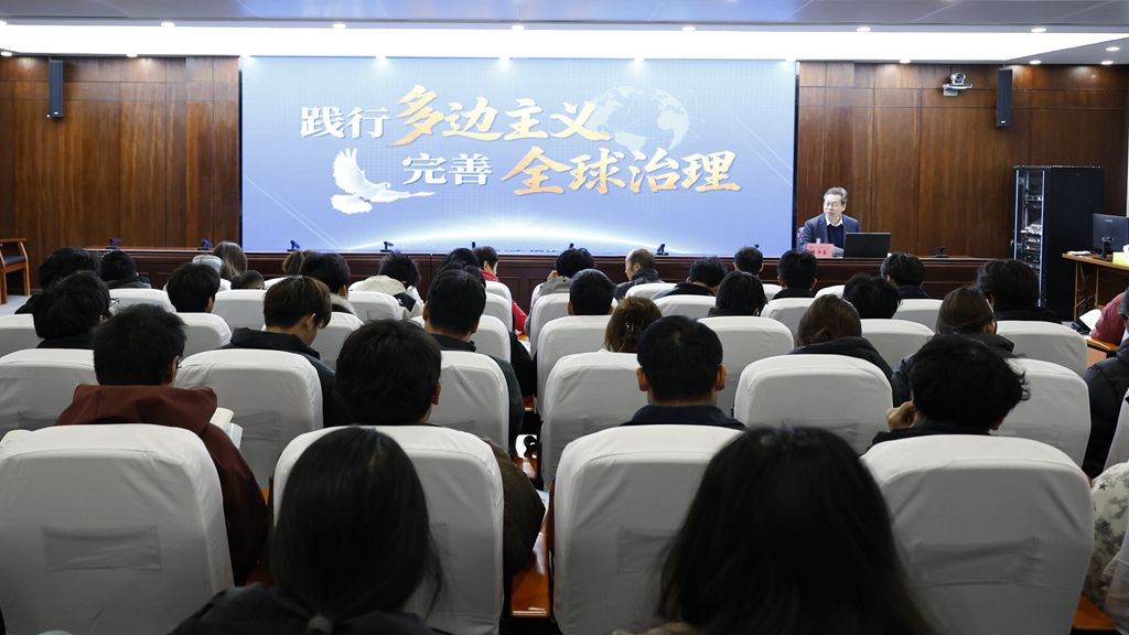 鲁书喜从“变乱交织的国际环境”“全球治理的国际共识”“时代之问的中国答卷”三个方面讲述了当前国际格局深刻演变,世界进入动荡变革期,和平与发展事业面临新的严峻挑战。回望人类社会发展历程,在历经两次世界大战浩劫后,国际社会深刻意识到,零和博弈与强权政治只会将世界拖入深渊,唯有秉持多边主义,国际上的事由大家共同商量着办,世界前途命运由各国共同掌握,才能铸就持久和平。