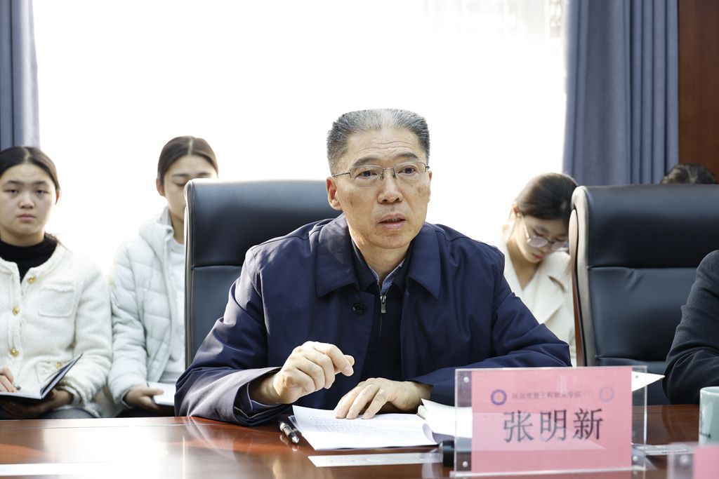 张明新指出,高校是人才聚集的高地、创新思维的源头,更是意识形态工作的前沿阵地,必须高度重视思想政治建设,教育培养出更多忠于党、忠于国家、忠于人民的时代新人。要坚持以思想领航,把准办学方向。深入学习贯彻党的二十届四中全会精神,在服务大局中找准方位;深入学习贯彻习近平总书记重要讲话精神,在融入地方中彰显价值;深入学习贯彻习近平总书记关于职业教育的重要论述,在深学笃行中加快发展。要坚持以特色立校,擦亮质量品牌。优化学科专业,构建“质量贯穿”特色体系;注重科研创新,打造“应用导向”特色标杆;深化产教融合,创新“需求牵引”协同机制。要坚持以融合聚力,实现校地共赢。平顶山市具有很好地资源、产业、科技、人才优势,能够为学院发展提供坚实的基础条件;市人大常委会将一如既往地支持学院的发展,为校地融合发展架好“连心桥”;学校要练好内功,融入产业布局,深化校企合作,厚植青年学生乡土情怀,鼓励引导更多毕业生选择平顶山、建设平顶山,在服务全市高质量发展中主动作为。