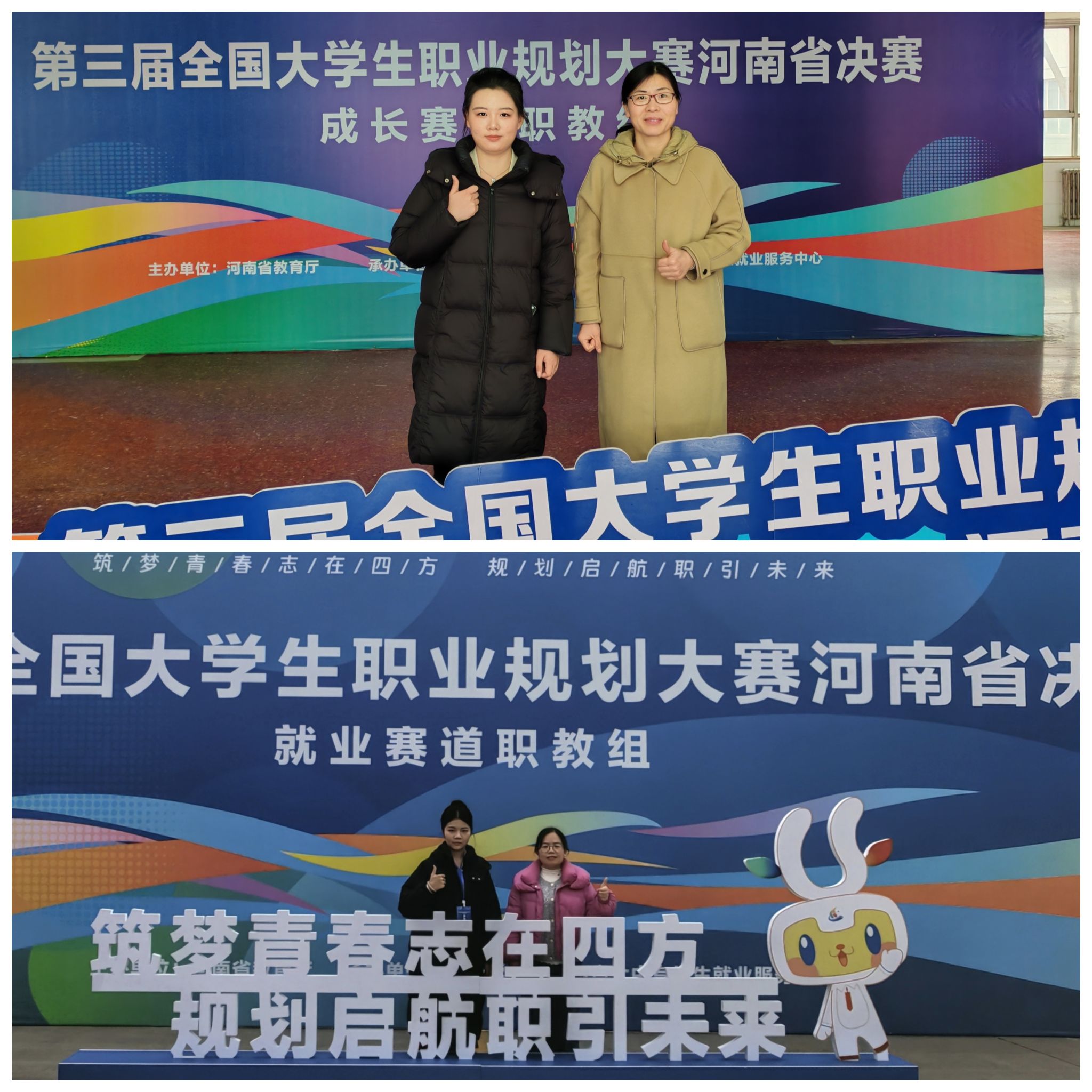 1月26日,由河南省教育厅主办的第三届全国大学生职业规划大赛河南省赛(职教组)在新乡举行。我院旅游管理专业2025级学生邢妙妙(成长赛道)、2024级学生徐冰鑫(就业赛道)分获银奖、铜奖。