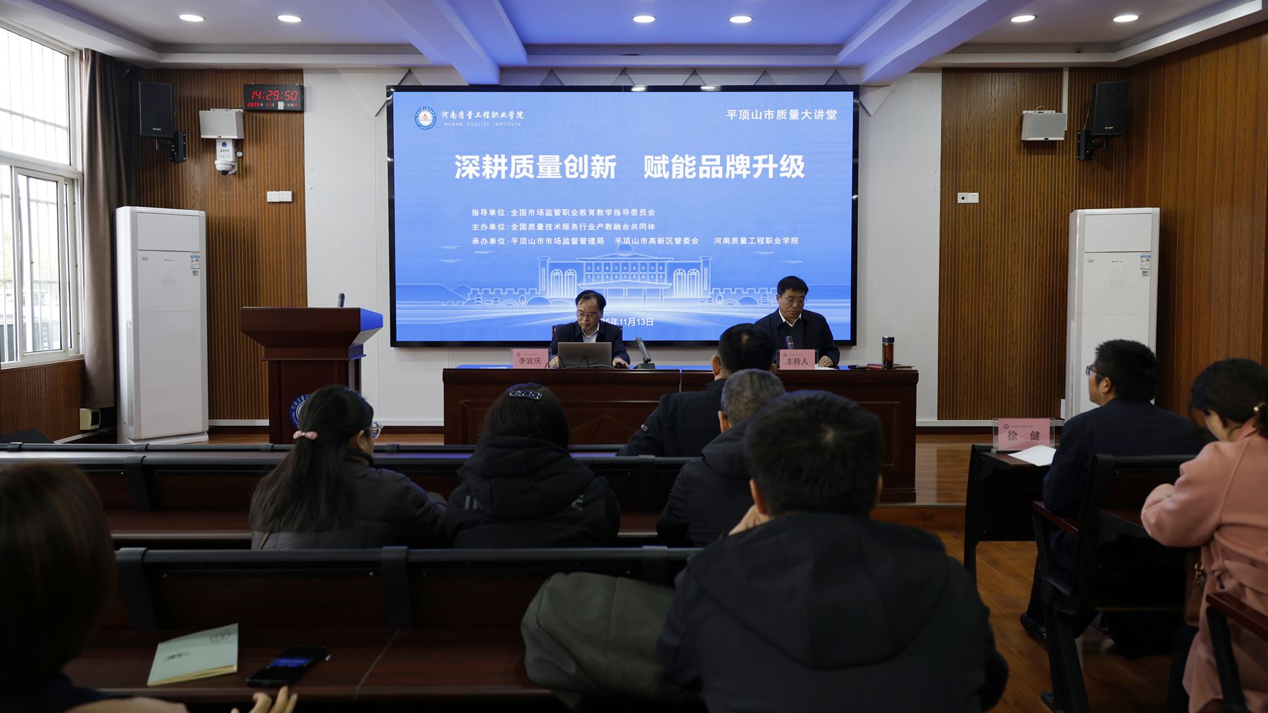 为深入贯彻国家质量强国战略,落实产教融合发展部署,搭建高质量技术交流合作平台。11月13日下午,平顶山市质量大讲堂在河南质量工程职业学院致知楼一楼举办。活动以“深耕质量创新 赋能品牌升级”为主题,汇聚全市各级政府质量奖获得单位、拟申报质量奖企业的质量管理负责人、技术骨干及申报经办人等各界代表,共探质量提升路径,共话品牌发展未来。活动由我校副校长张虽栓主持。