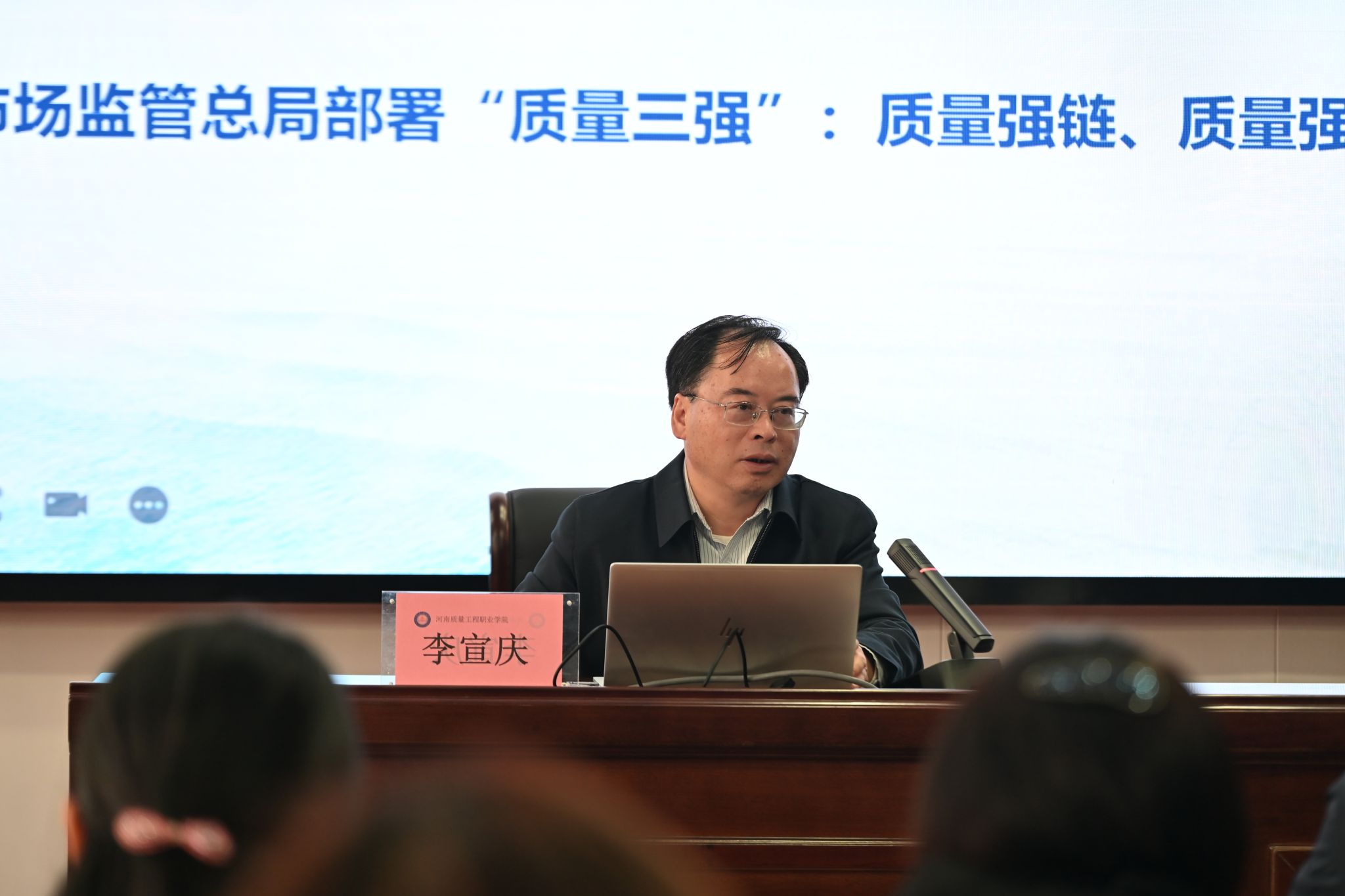 全国市场监管职业教育教学指导委员会质量管理与认证类专业委员会主任委员李宣庆带来《国家质量政策与质量教育》专题分享。他围绕质量工作怎么看,质量工作怎么干,平顶山质量怎么办三个角度,清晰梳理了国家质量政策导向,也为平顶山市企业精准把握政策机遇、强化质量管理体系,高质量发展指明了方向。