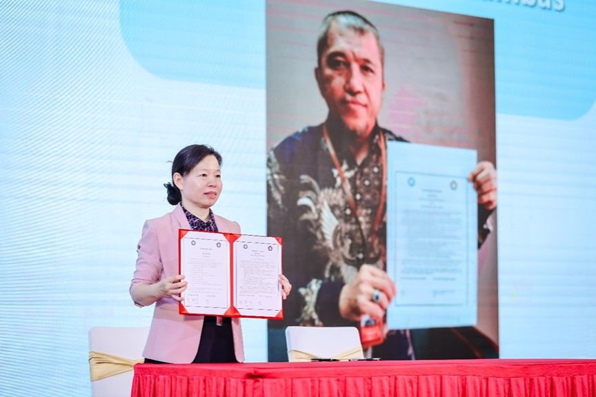 当天下午,“一带一路”智能制造产教融合共同体成立大会同步召开,席会平作《匠心质造 检测未来——河南质量工程职业学院国际化发展纪实》专题报告,并与印度尼西亚三发国立理工学院校长Yuliansyah博士签订了合作意向书。