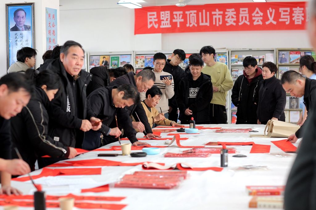 1月16日下午,河南质量工程职业学院图书馆四楼墨香氤氲、暖意融融,第七届“翰墨书香迎新春”春联笔会在此举行。本次活动由学校主办,民盟平顶山市委员会倾力邀请多位知名书法家现场挥毫,为全校师生义写春联,送上新春祝福。