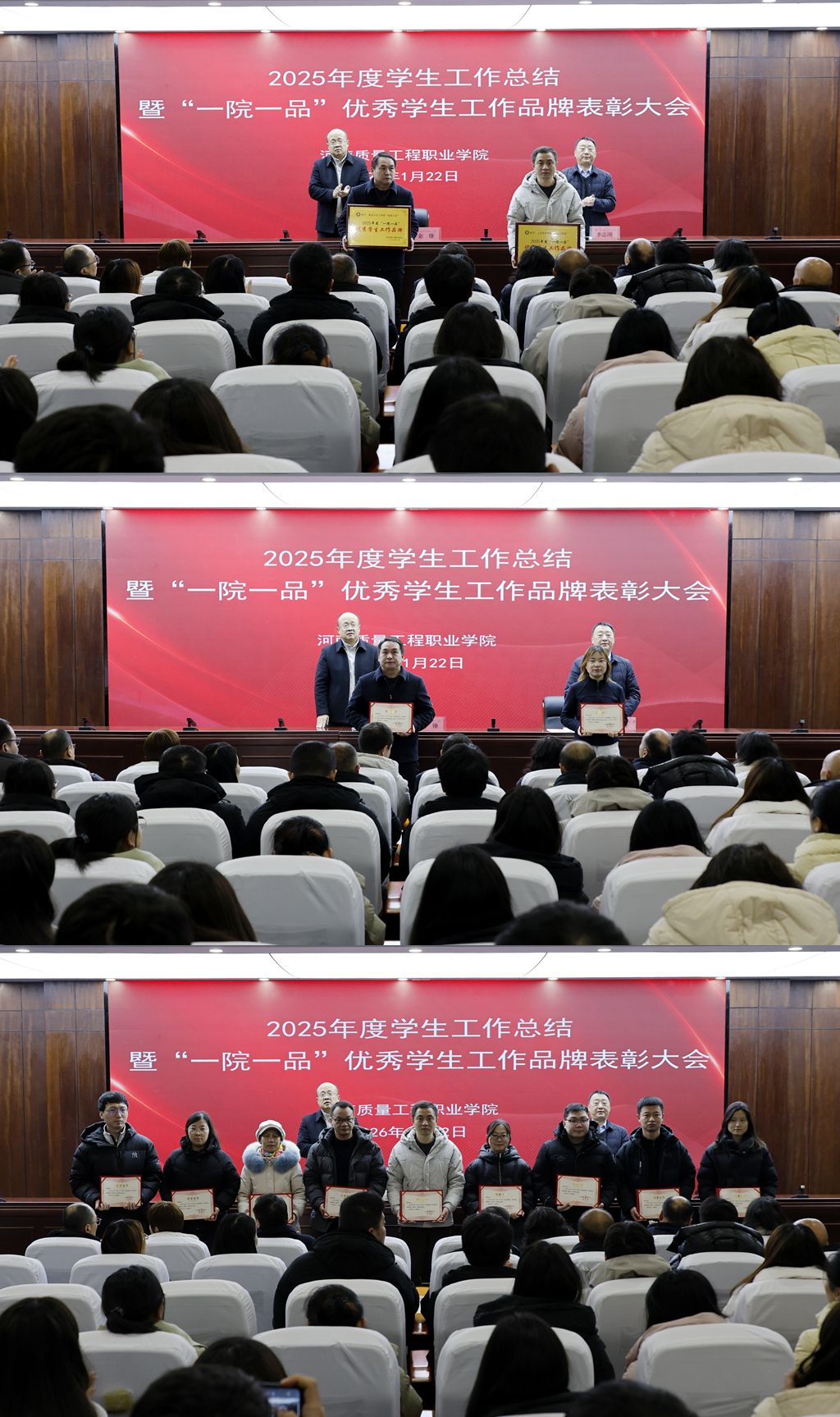 金铮在讲话中充分肯定了2025年学生工作,特别是“一院一品”品牌建设在推动育人模式转型、促进学生全面成长和彰显办学特色方面取得的阶段性成果。他强调,学生工作品牌建设是一项需要久久为功的系统工程,要持续深化思政教育、优化管理服务、提质品牌建设、建强骨干队伍,推动学生工作向更高质量、更具特色、更富实效的目标迈进,为培养全面发展的高素质技术技能人才作出更大贡献。