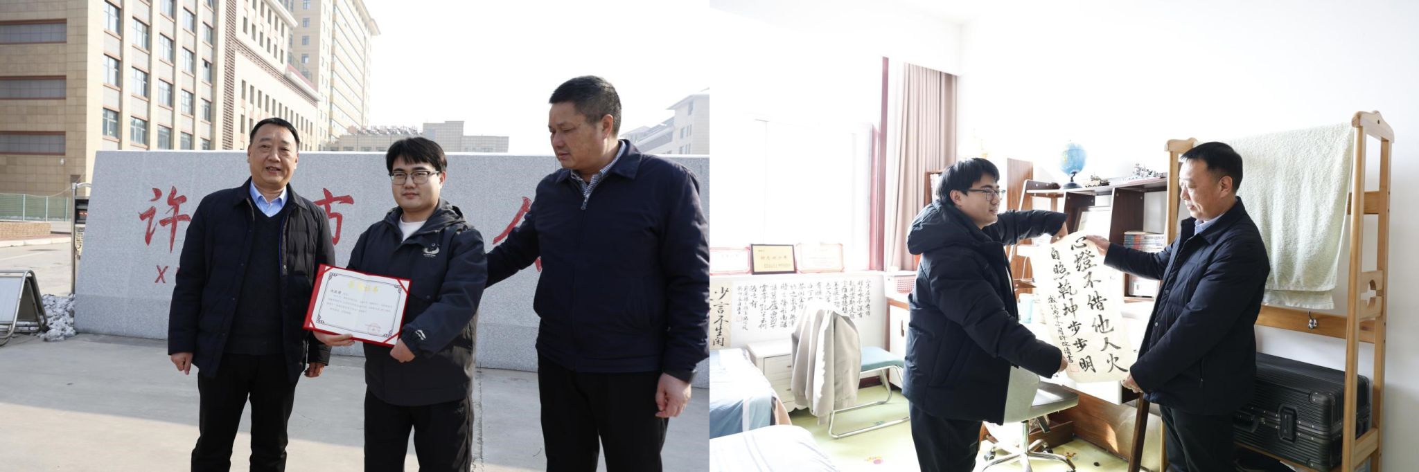 岁末天寒情意浓,殷殷关怀暖人心。1月23日,受学校党委和行政委托,由学生处、食品与化工学院相关负责人及教师组成慰问组,驱车前往许昌市社会福利院,看望慰问我校24级食品营养与健康班特殊学子许改请,为他送去学校的深切关怀与新春祝福,并与福利院领导就特殊群体学生成长帮扶、融合教育发展等事宜深入交流。