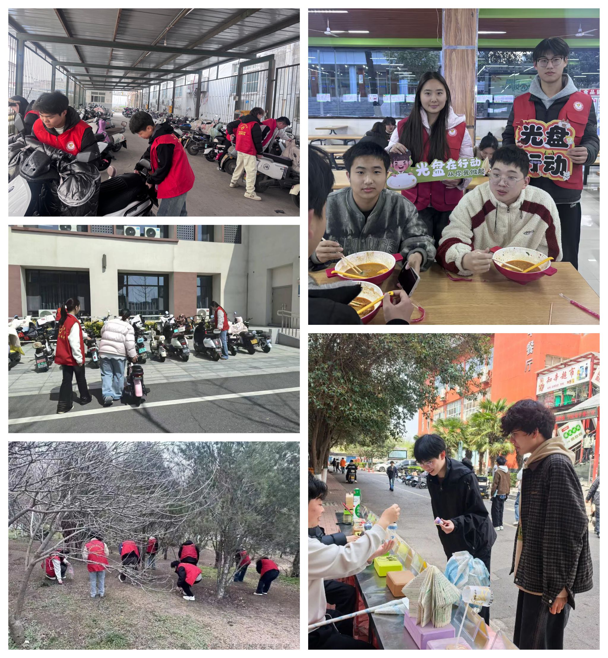 在文明倡导方面,公共管理学院聚焦校园秩序,于3月9日至3月20日在舞钢校区开展了“文明骑行、规范停车”宣传整治活动,让校园交通更加安全有序。经济与管理学院除了组织志愿者开展电动车规范摆放活动外,还于3月17日开展了“光盘行动——传承雷锋精神,践行节约风尚”活动,引导同学们从点滴做起,养成勤俭节约的好习惯。