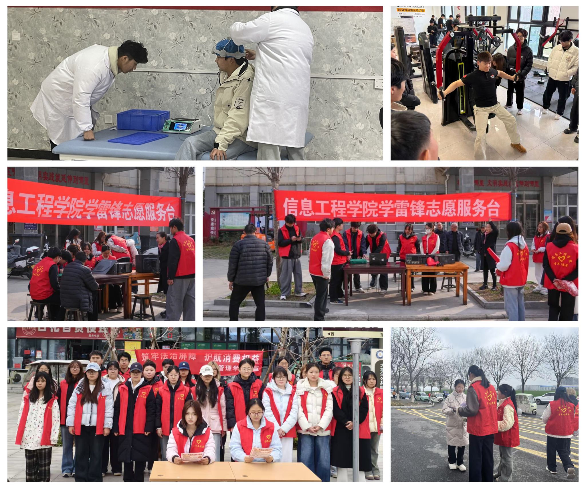 各学院立足学科优势,推动专业技能与社会服务深度融合。建筑工程学院志愿者走进曙南社区,开展健身器材检修、墙体美化及无人机安全巡检等精准服务,获居民点赞。信息工程学院发挥技术专长,以“电脑义诊”解决师生用机难题,并用义务证件照拍摄定格青春瞬间。人文艺术学院开设健身房公益授课,为同学提供科学健身指导。食品与化工学院创新开展“特色康复消郁气,精准理疗助酣眠”经颅磁理疗活动,将专业知识转化为健康服务新力量。公共管理学院在“3·15”期间开展普法宣传,普及消费者权益保护知识。