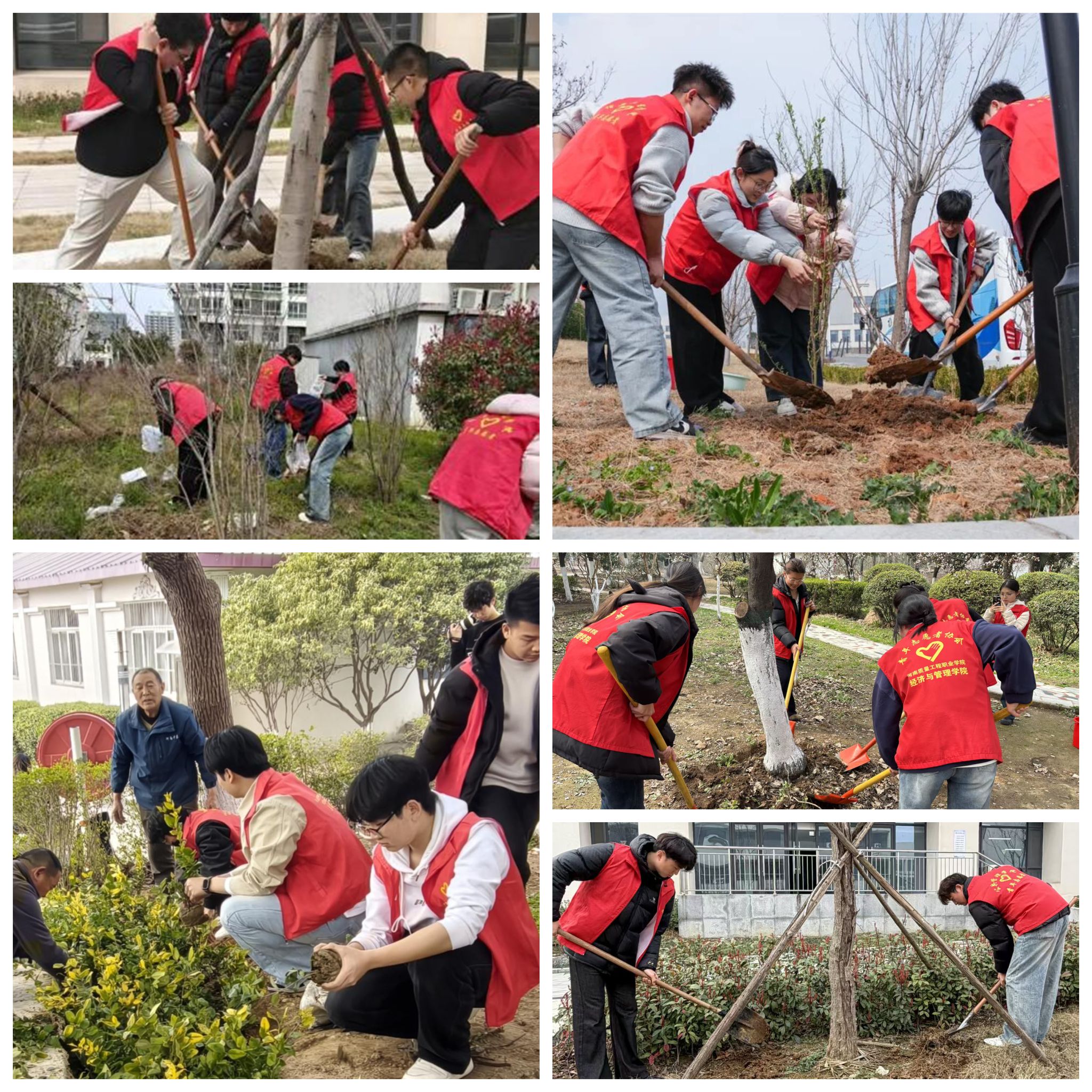 围绕“绿色校园”建设,多学院联动开展专项行动。植树节当天,经济与管理学院、计算机技术学院、信息工程学院、机电工程学院、公共管理学院等同步开展植树护绿、树木养护活动,用汗水浇灌绿色希望。食品与化工学院则另辟蹊径,推出“绿动创想,旧材织梦”创意改造活动,鼓励学生利用废旧材料进行艺术创作,传播环保理念。五年制大专部学生志愿者主动清理校园卫生、整理实训场地、维护公共秩序,以劳动美化校园环境。