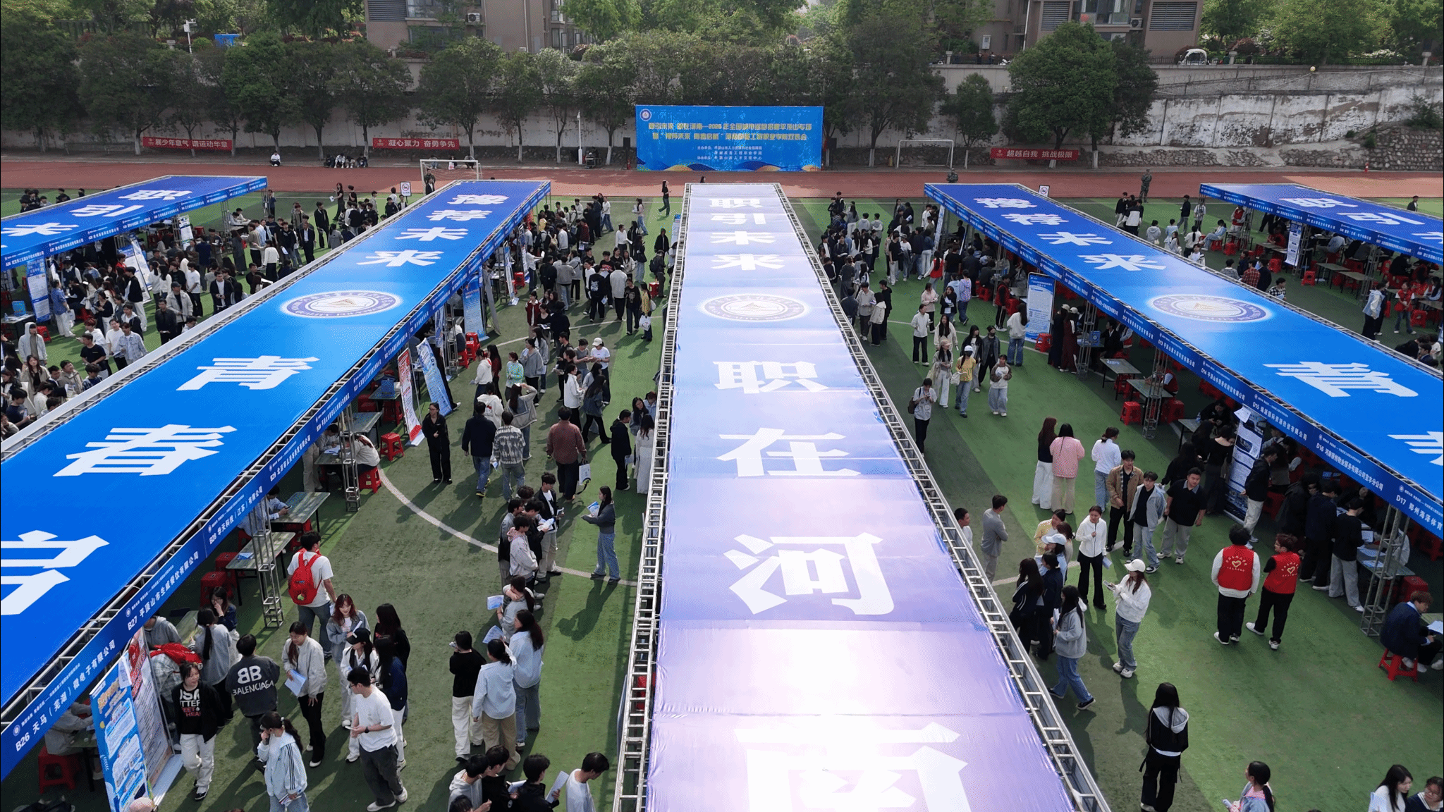 4月14日-15日,由河南质量工程职业学院、平顶山市人力资源和社会保障局、舞钢市人力资源和社会保障局联合主办,平顶山市人才交流中心协办的“职引未来 职在河南——2026年全国城市巡回招聘平顶山专场暨‘豫荐未来・青春启航’河南质量工程职业学院双选会”先后在校本部和舞钢校区举办。