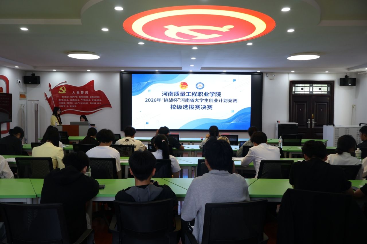 河南质量工程职业学院2026年“挑战杯”河南省大学生创业计划竞赛校级决赛于4月23日顺利举办。本届大赛由校团委主办,自启动以来,共吸引了全校65支学生团队报名参与,经过初赛阶段的严格评审,最终有40支优秀团队晋级决赛。
