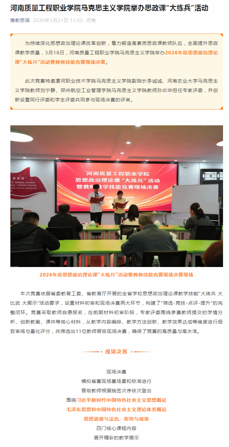 豫教思语:河南质量工程职业学院马克思主义学院举办思政课“大练兵”活动