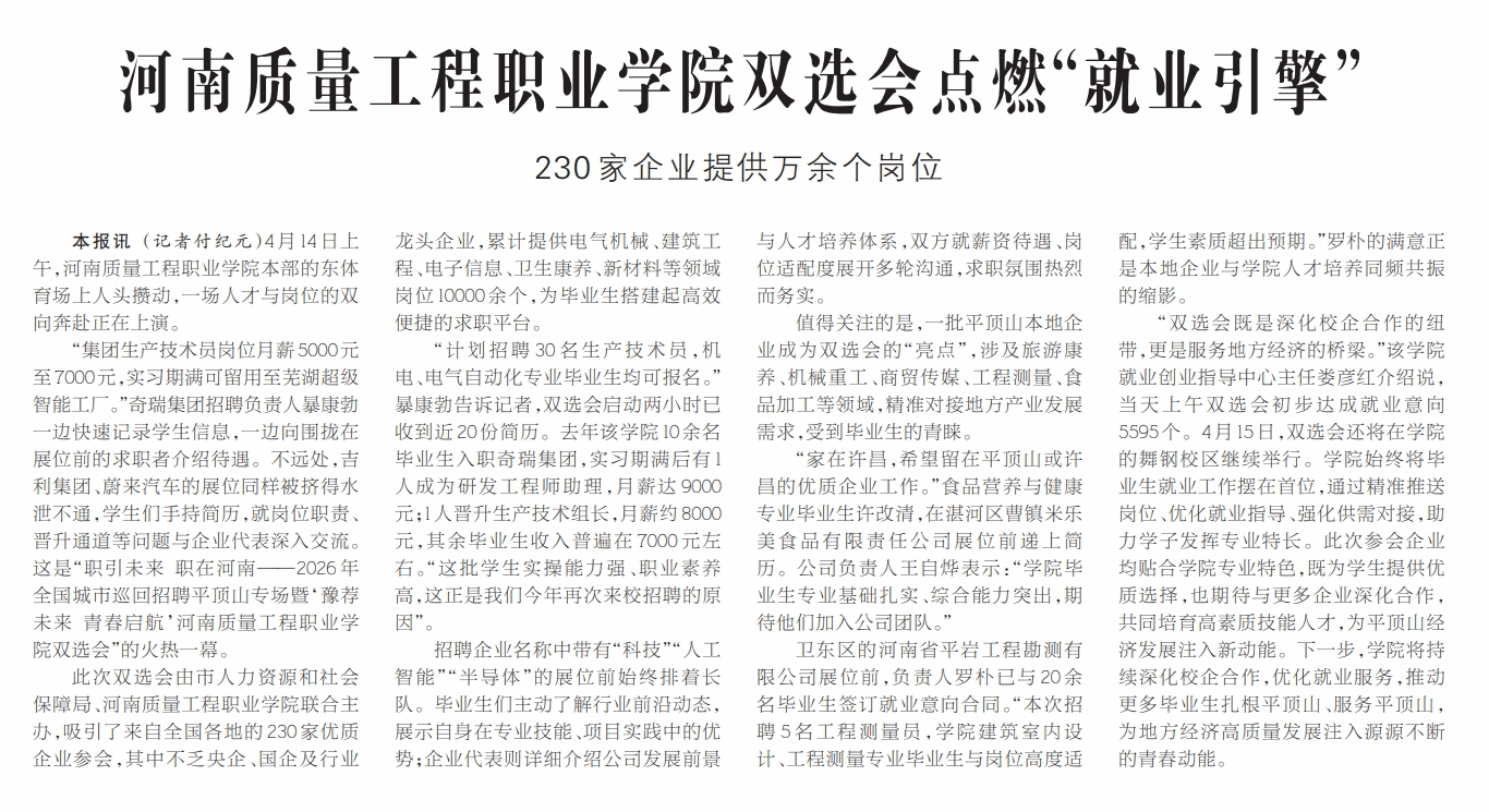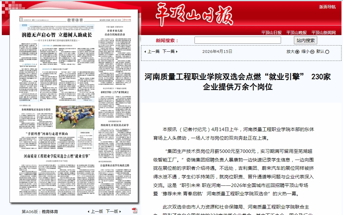 原文刊载于《平顶山日报》2026年4月15日第A06版。