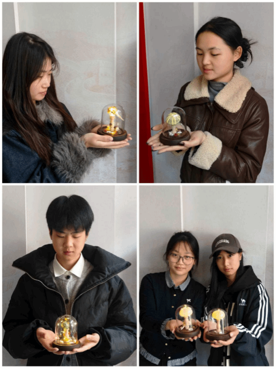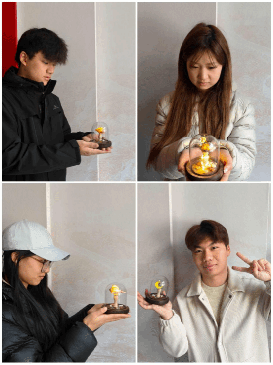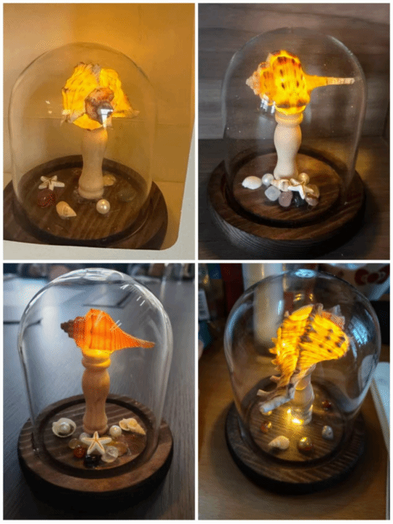 制作完成后,同学们纷纷点亮自己的作品,一盏盏海螺小夜灯散发出温暖而柔和的光芒,仿佛将海的呢喃凝驻于掌心。大家互相欣赏彼此的创作,分享制作过程中的灵感与体悟,现场氛围温馨而治愈。