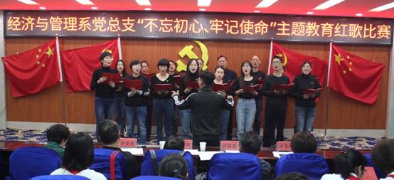 比赛现场,台上歌声嘹亮,台下掌声雷动。《我和我的祖国》、《五星红旗》、《歌唱祖国》、《映山红》等一曲曲激昂、深沉的红色旋律,诉说着共产党员不忘初心、无畏艰险、砥砺前行的担当和使命,饱含对祖国繁荣昌盛,五星红旗永远飘扬的美好祝福。最终经济与管理系教工二支部获得了团体总分第一名,学生支部合唱《映山红》获得单曲第一名。
