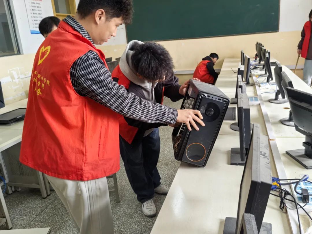 机房作为计算机专业学生学习编程和进行实践操作的关键场所,因日常使用频率极高,设备积灰、线路杂乱等问题日益突出。为了改善这一状况,3月13日,计算机技术学院团总支组织志愿者开展“我为同学做实事”机房清洁维护志愿活动。