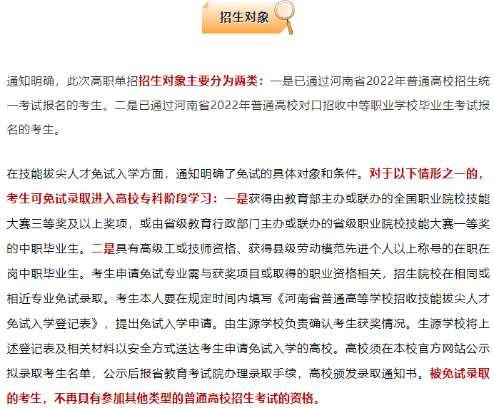 河南省2022年高职单招和技能拔尖人才免试入学招生院校名单