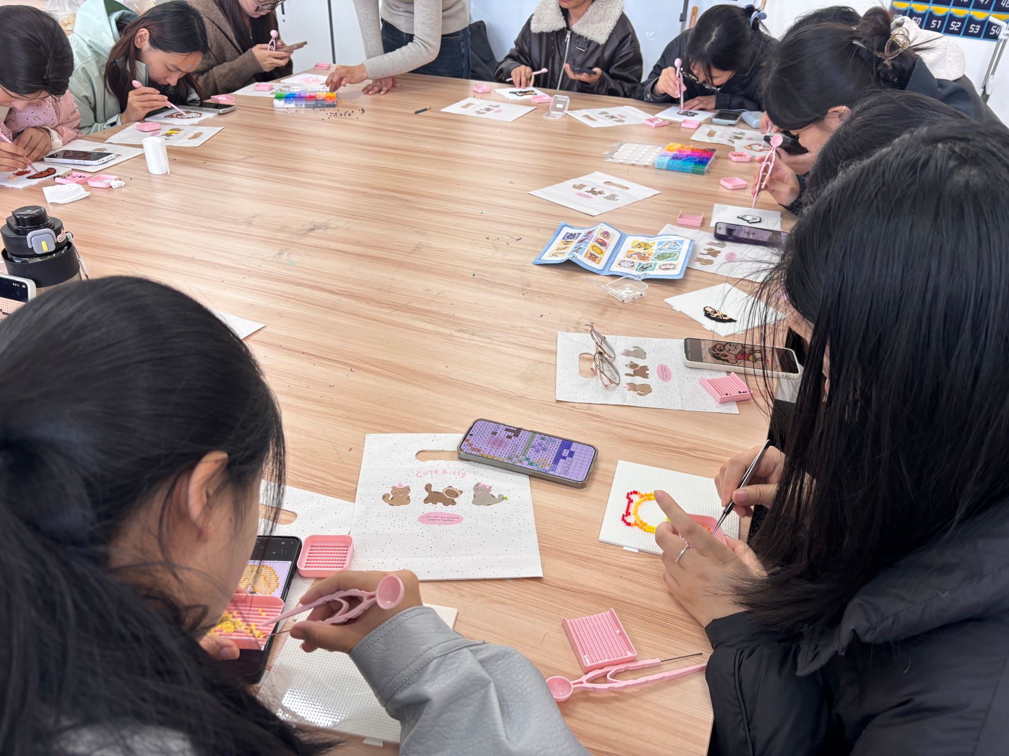 活动全程由虹桥工作室提供支持,志愿者们在拼豆挑选、图案拼接、轮廓勾勒等环节,为同学们提供耐心建议与细致指导。参与者专注于豆粒的组合拼接,暂别日常压力,在亲手完成专属作品的过程中收获满满成就感,深切体会到手工创作带来的治愈力量。