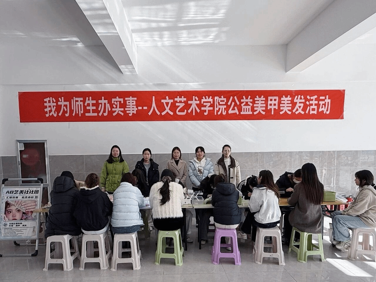 11月25日中午,致知楼一楼暖意涌动。人文艺术学院“我为师生办实事”公益美甲活动正式启幕,活动面向全体师生免费提供美甲服务。专业技术搭配多样款式,为教职工与同学们送上一份指尖精致,为忙碌日常加份小惊喜,让善意在服务中悄悄传递。