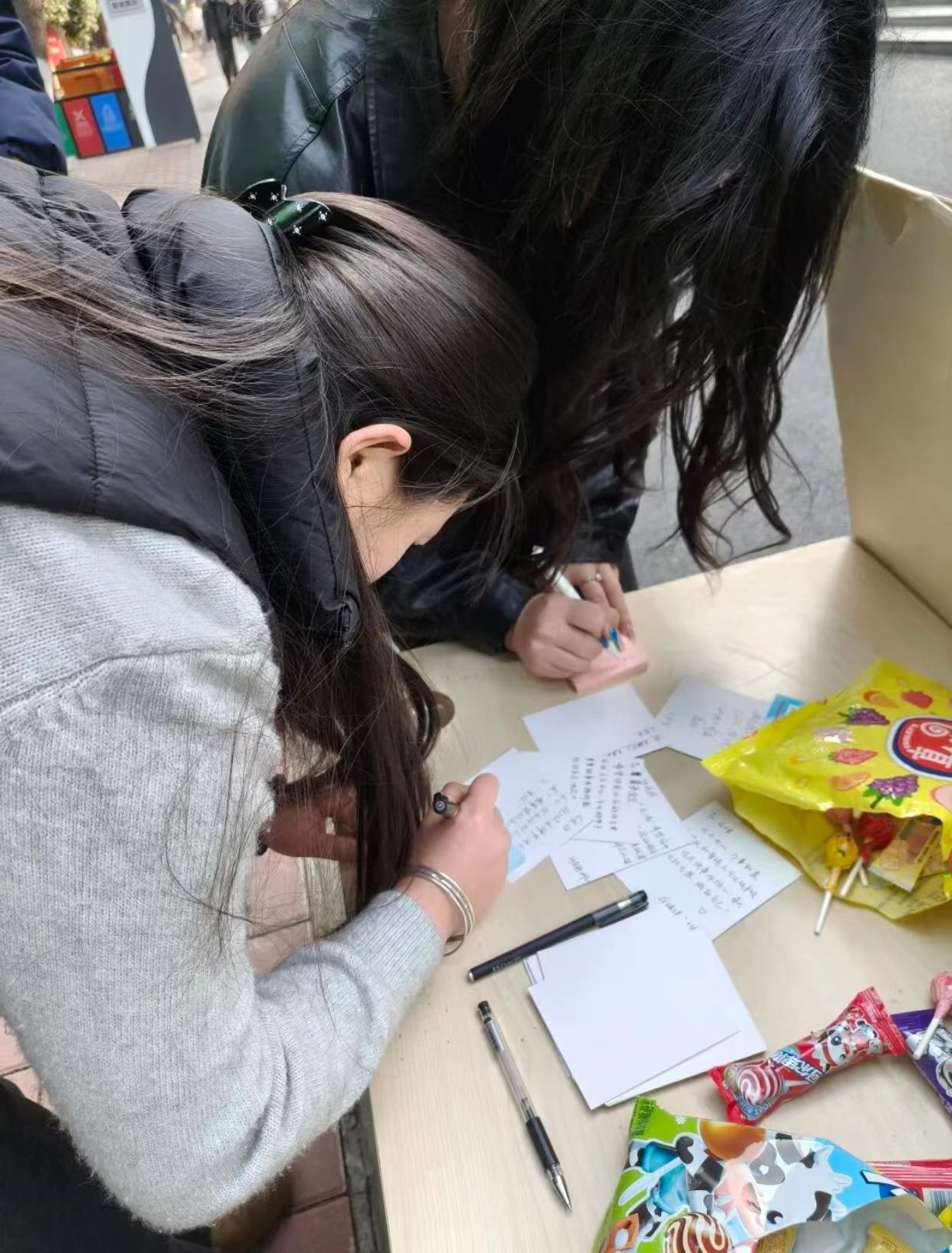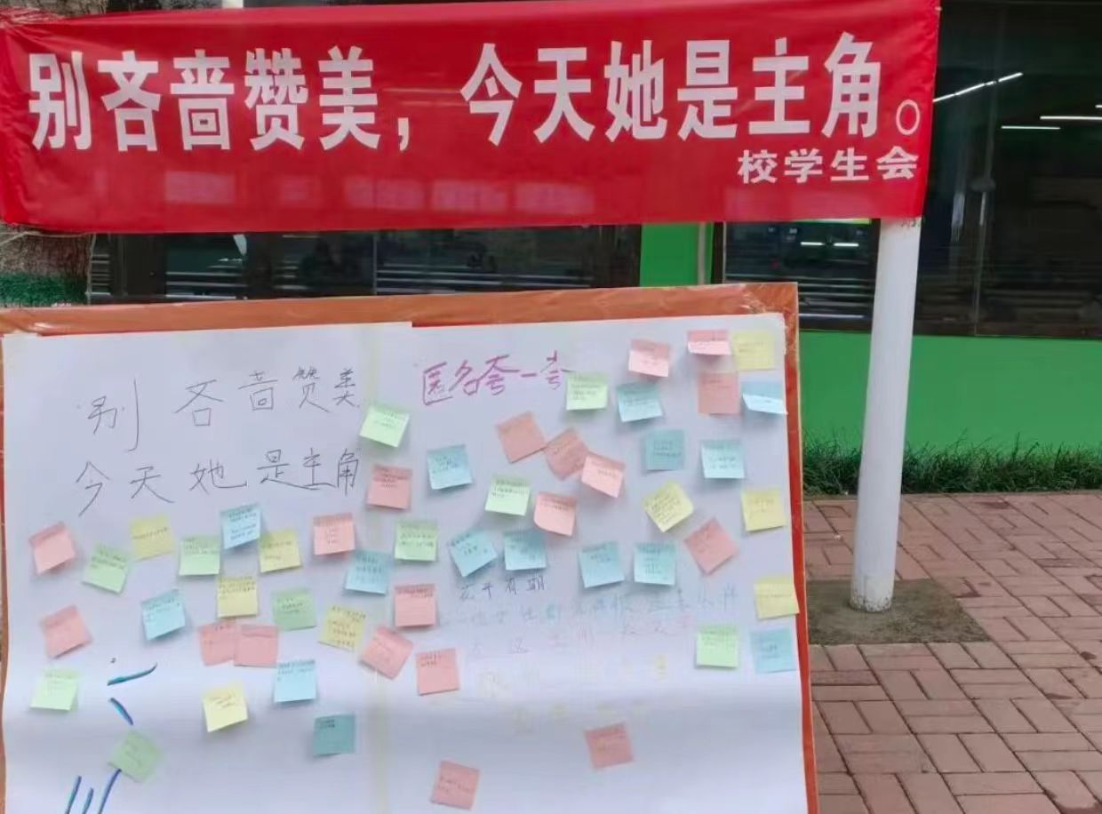 3月8日下午,学生会工作人员在思源餐厅门口开展活动,同学们在便签上写下自我肯定与祝福,贴满展板,汇成彩色海洋。男生也悄悄写下对妈妈,姐姐的爱,温暖流淌,每一张手写贺卡,都在征得同意后,由学生会工作人员亲手送到了被祝福的人面前。