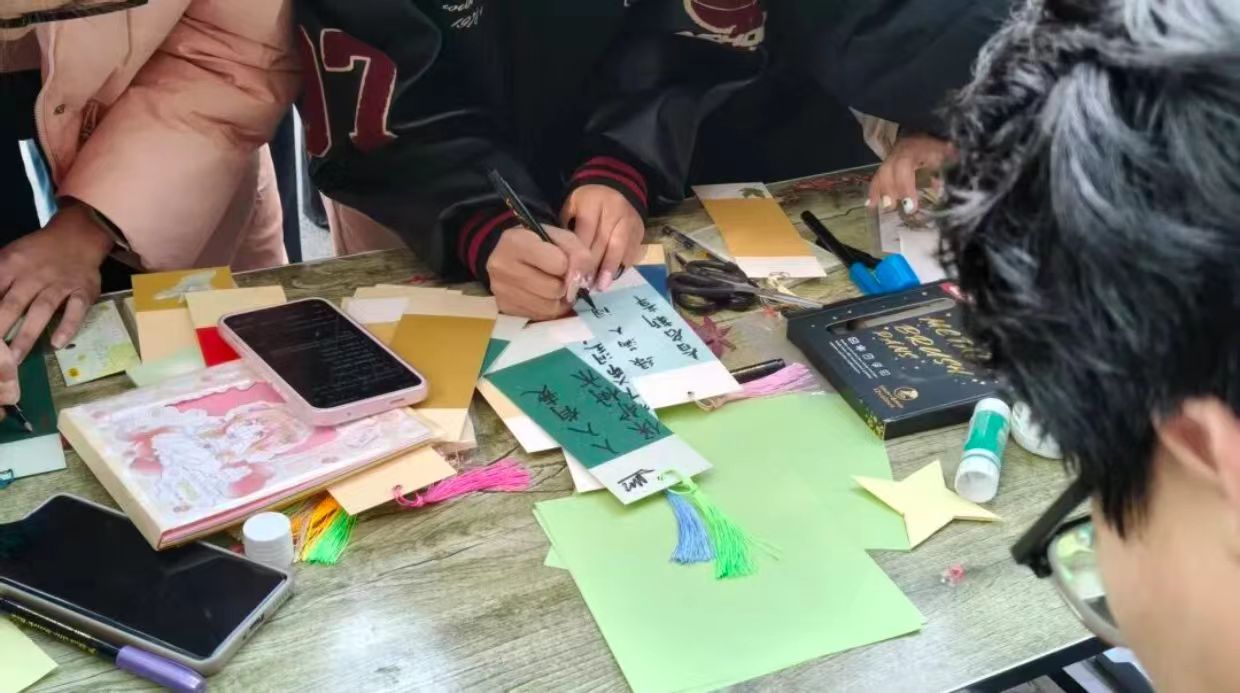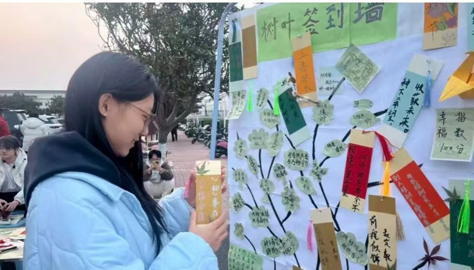 同学们陆续来到现场,在工作人员的引导下有序参与各项环节。大家或驻足在树叶签到墙前,认真书写环保心愿与护绿倡议,或围坐在DIY桌旁,用植物贴纸精心装饰专属书签,或踊跃参与绿色知识问答,在趣味答题中收获环保知识,现场气氛热烈而温馨。
