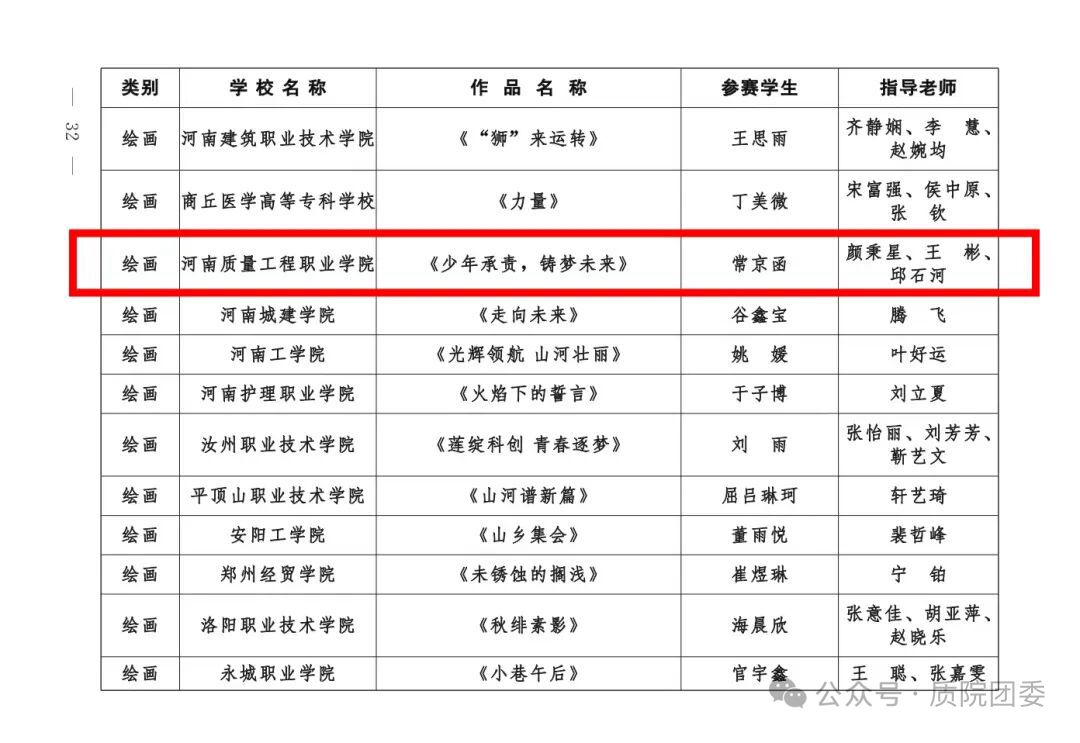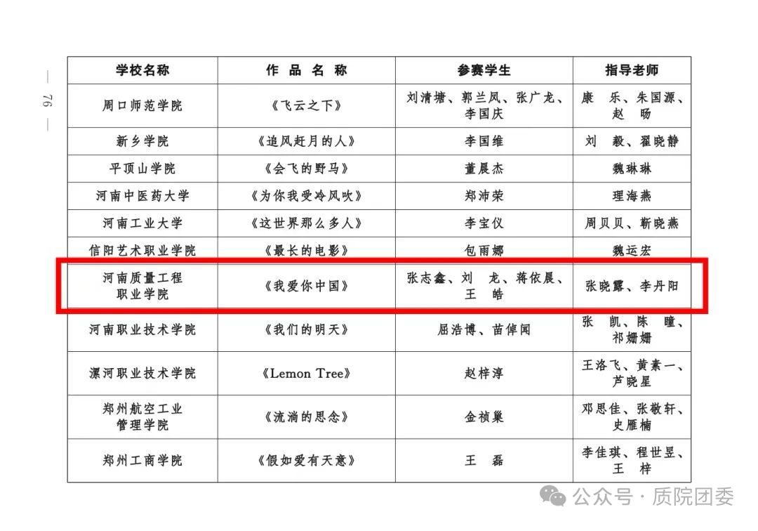 近日,由河南省委宣传部、团省委、省教育厅、省文化和旅游厅、省科学技术厅、省体育局和省学联共同主办的河南省第二十届大学生科技文化艺术活动各项决赛圆满落幕。我校学子积极参与、奋勇争先,凭借过硬的专业素养和亮眼的现场表现,在竞赛中喜获四项奖项,为校争光。