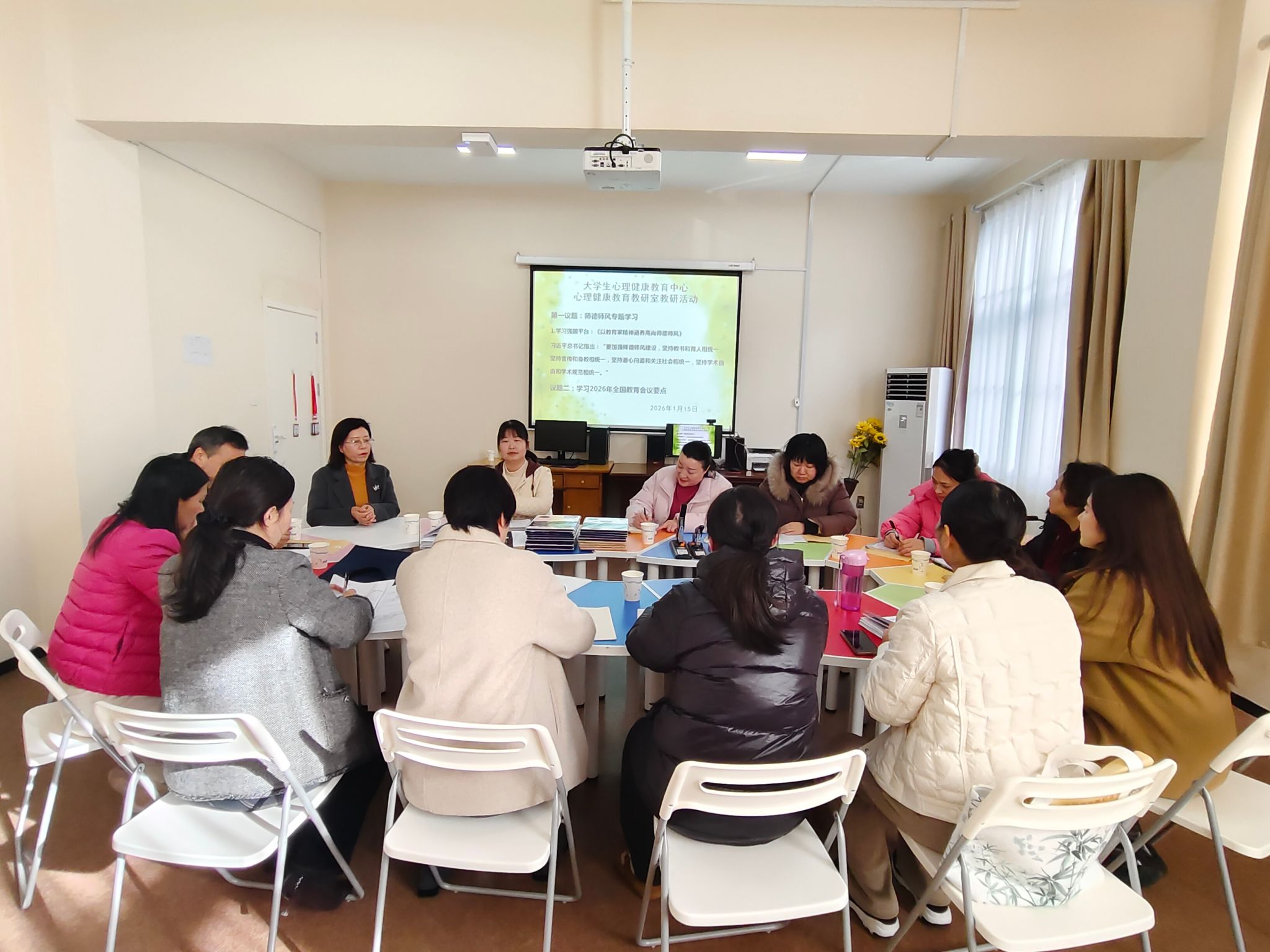 为深入学习贯彻习近平总书记关于教育的重要论述,全面落实立德树人根本任务,切实提升心理健康教育教学质量与育人实效,2026年1月15日,大学生心理健康教育中心心理健康教育教研室召开了2025年秋季期末教研暨2026年春季学期第一次教研会议。