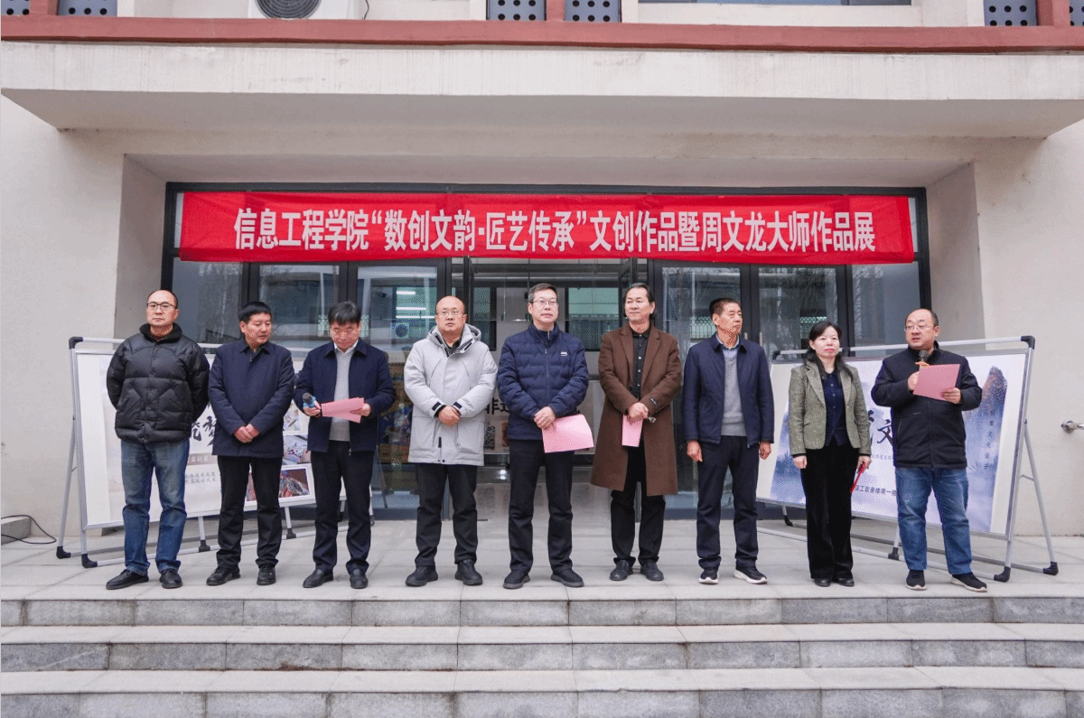 12月22日,由信息工程学院主办的“数创文韵·匠艺传承”文创作品暨周文龙大师作品展在舞钢校区致善楼开幕。学校领导鲁书喜、张林、金铮、席会平、张虽栓,高级工艺美术师、河南省工艺美术大师周文龙出席开幕式。舞钢校区管委会相关负责人、信息工程学院全体教职工及学生代表共同参加了本次活动。开幕式由信息工程学院院长陆晓强主持。