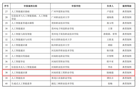 近日,教育部职业院校信息化教学指导委员会公布了2026年全国职业院校“人工智能应用典型案例”遴选结果,我校信息工程学院申报的“人工智能通识课”成功入选。
